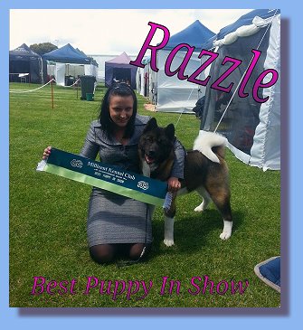 Shokuma Razzle Dazzle sired by UK Imp CH Ruthdales Unleash the Fury.